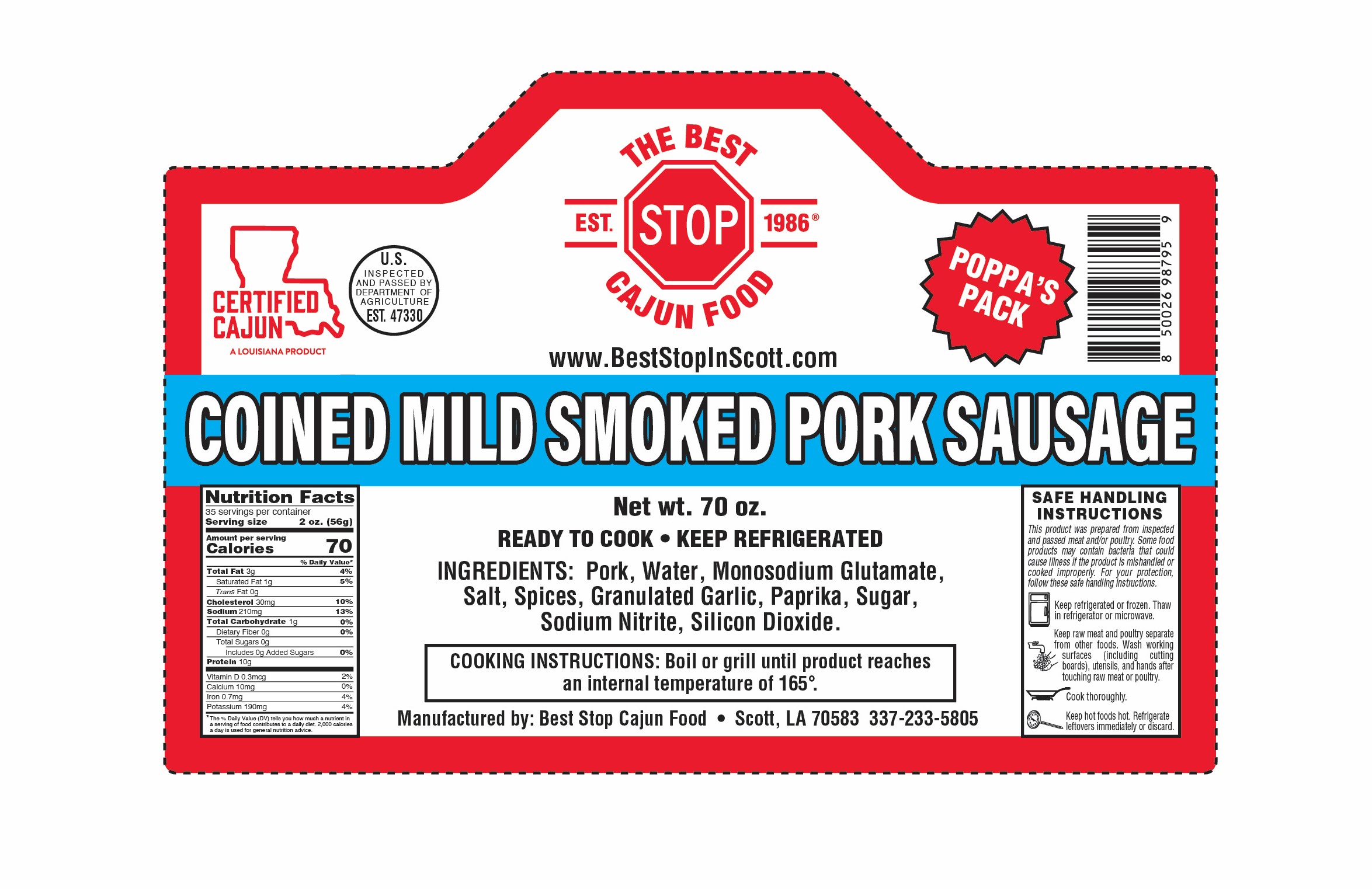 Now pre‑cut for your convenience! Our Mild Smoked Pork Sausage comes sliced into generous 3/8″–1/2″ thick pieces, making it faster than ever to add authentic Cajun flavor to any dish. Perfect for those big tailgating cookouts or large family gatherings.